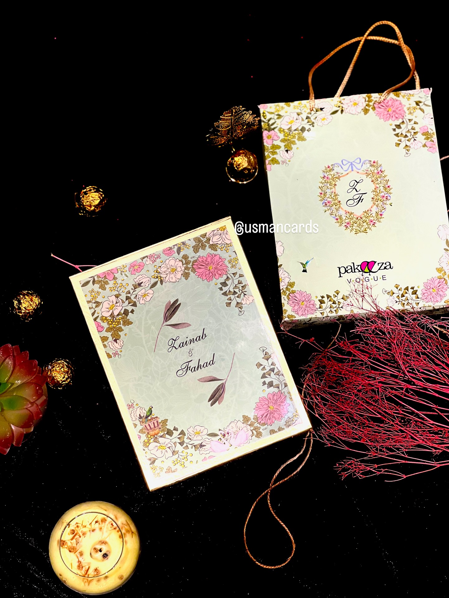Complete Package: The main invitation card is housed inside the box, which is then presented in the large, matching Gift Bag.